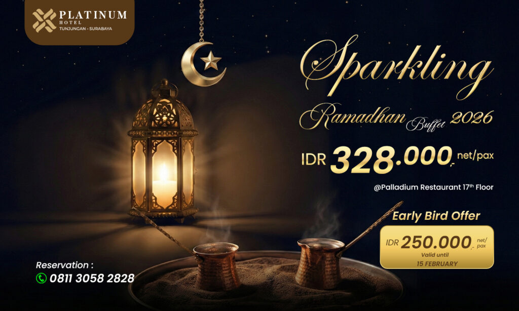 | Platinum Hotel Surabaya | Rp. 328.000,- net/pax | Rp. 250.000,-net/pax | Sparkling Ramadhan Buffet 2026 | 081130582828 |